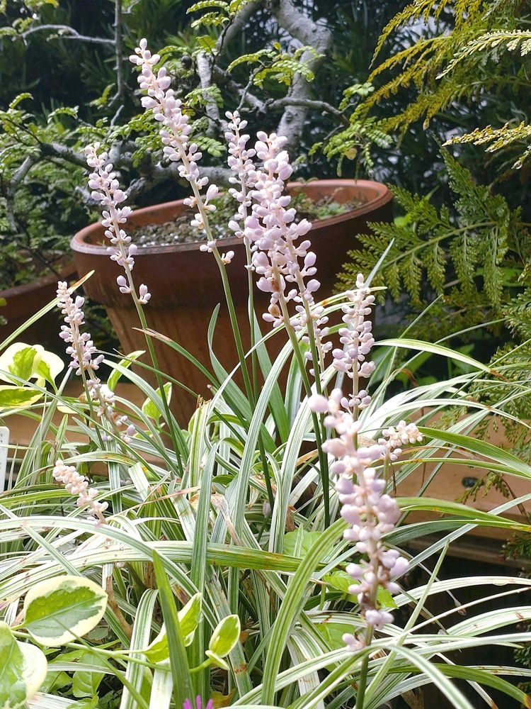 寄植えしていたヤブラン!最近、雨🌧が強く降ったりしていたので、とってもとっても元気です!最近!だから花が最適くれたのかも❣