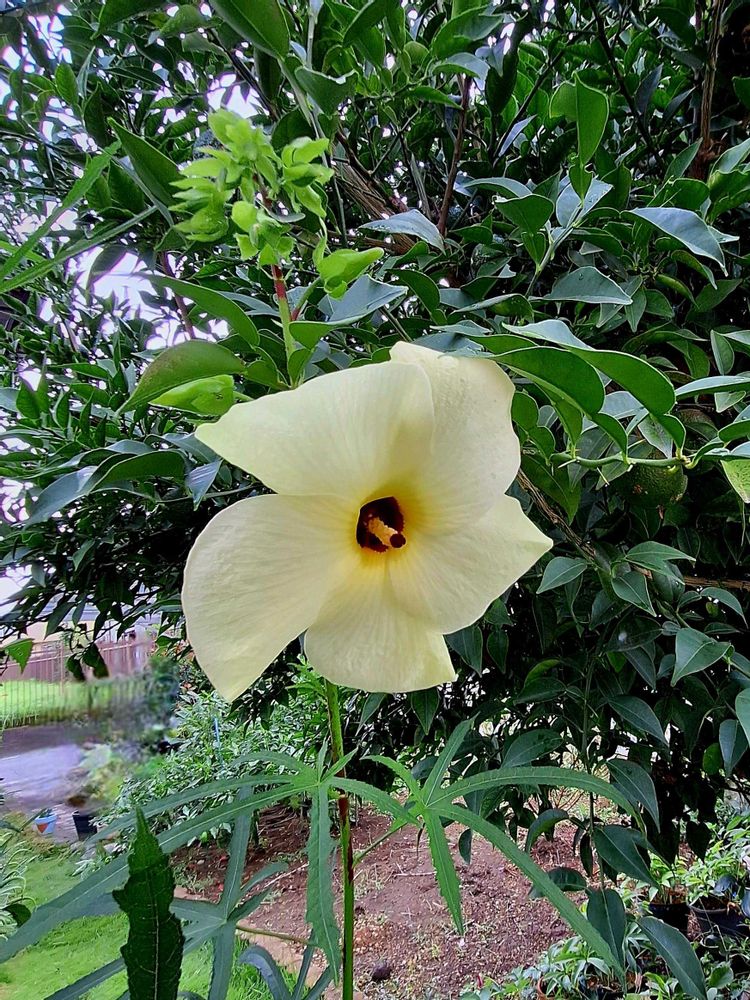 ③涼しくなってまた咲き出した花オクラ(トロロアオイ)