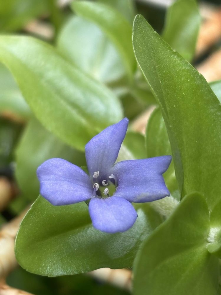 ①初めてのお花、メダカを飼ってるところに植えたウォーターバコパ。小さなブルーの花が咲いた😍