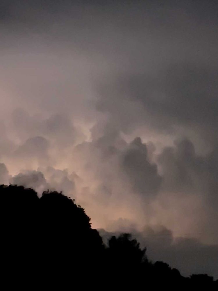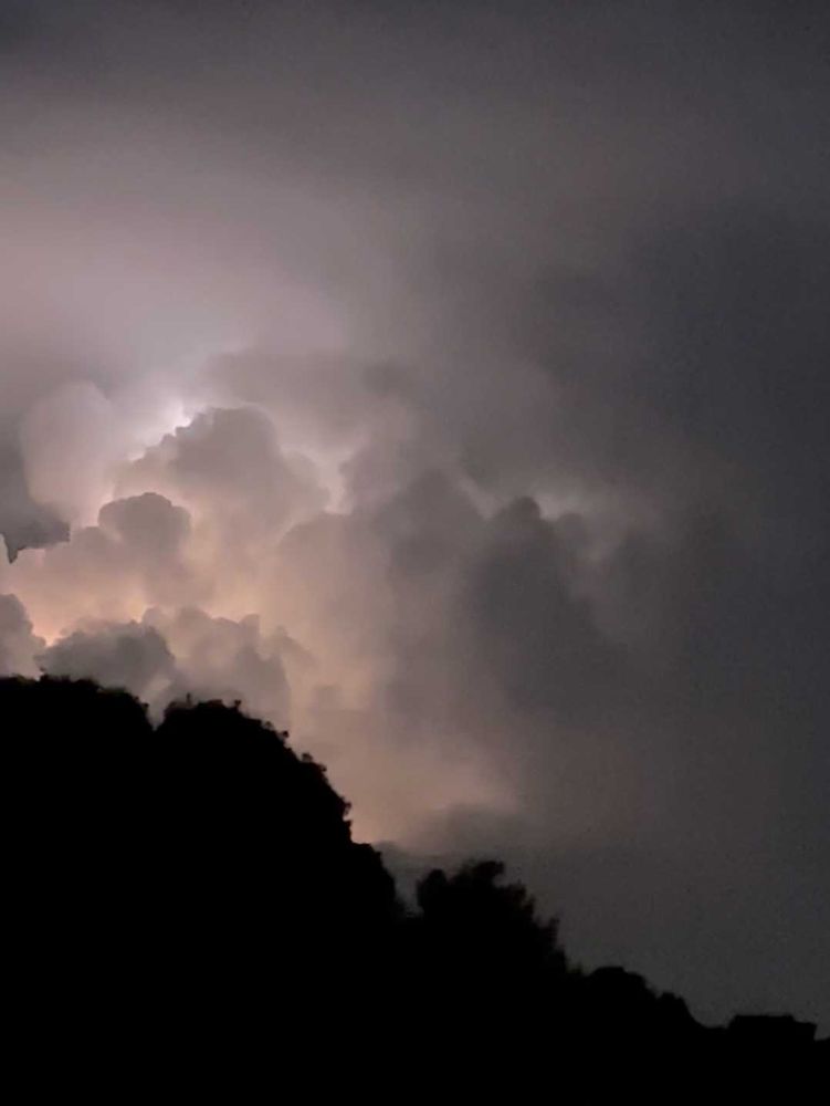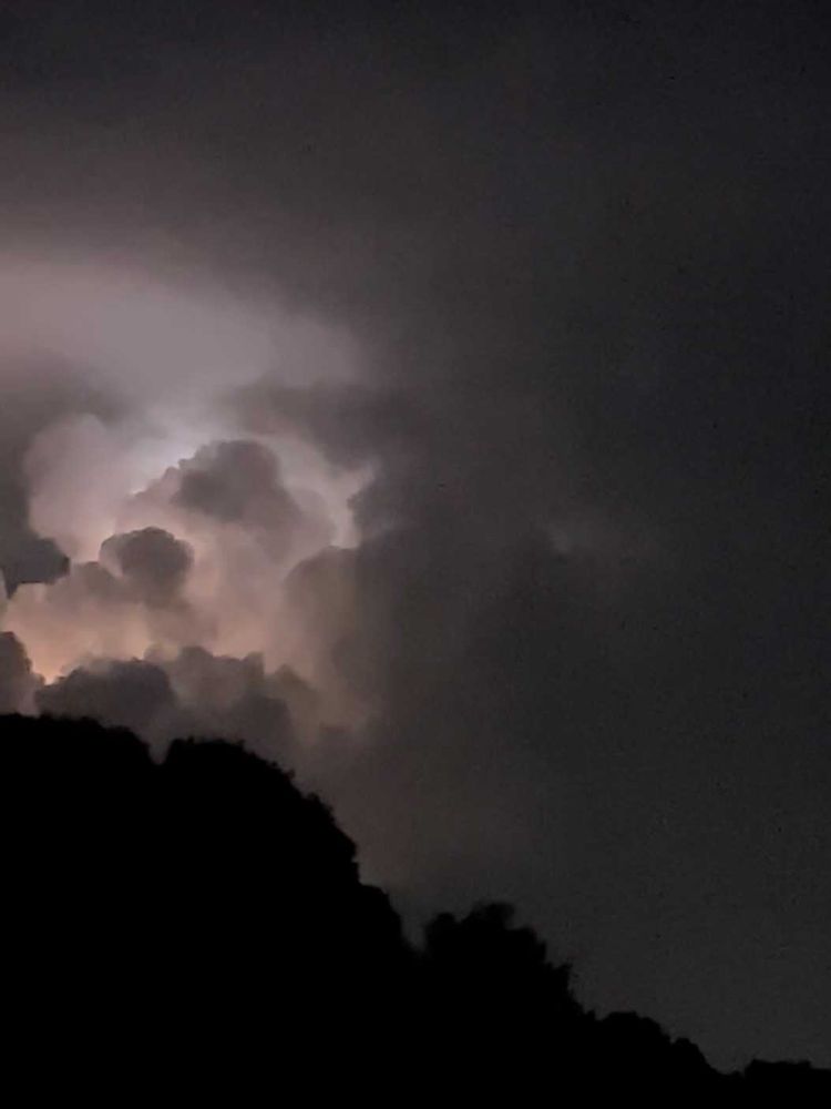 雷の音は聞こえないぐらい遠くでしたが、ものすごく光っていて怖かったです😆