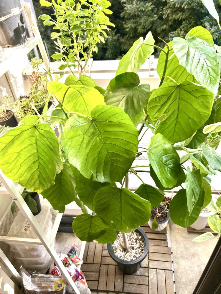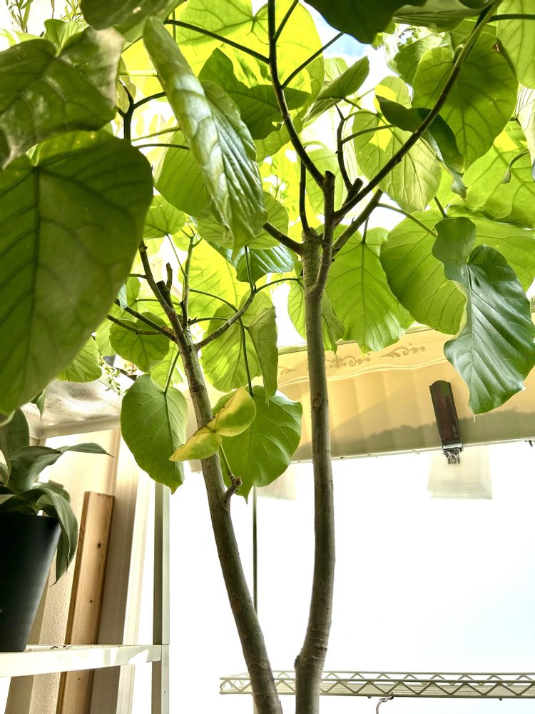 ベランダのウンベラータ4号機😊太陽🌞のチカラ💪はすごーい😊ワサワサになって来たので葉っぱを少し剪定しました😊