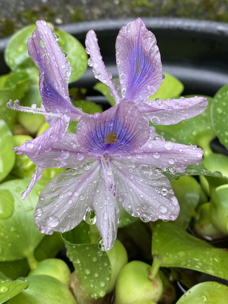 ホテイアオイ,雨の日,メダカ鉢での投稿画像