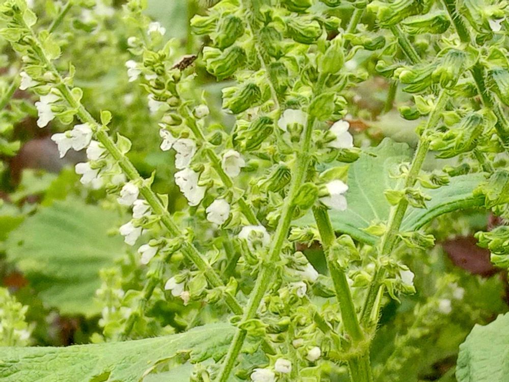 青紫蘇と赤紫蘇の花が咲き始めました🤍💜