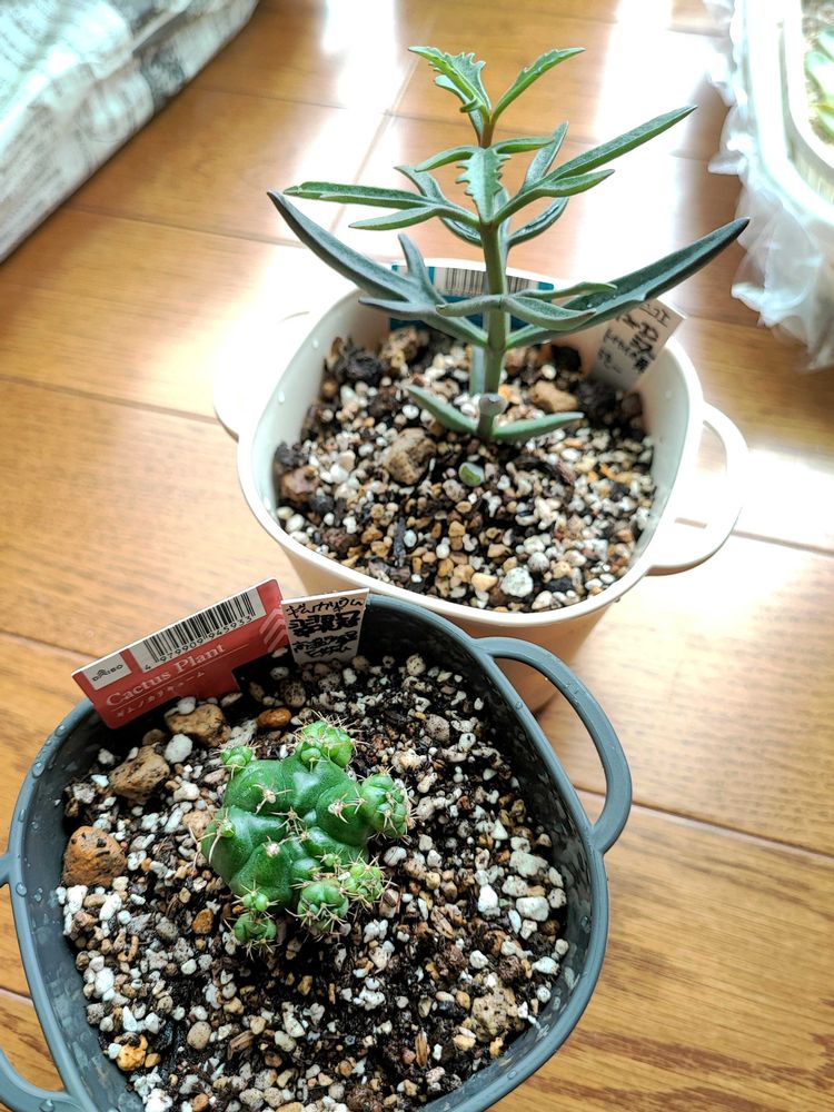 昨日のダイソー戦利品、簡単なものからぼちぼち植え替えしてます。まずは植え替えの際に水やりOKのものから。
