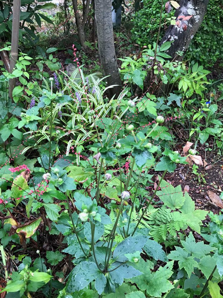 シュウメイギクは一度枯れましたが、再度葉っぱが出てきて背は低くても蕾まで持っています。