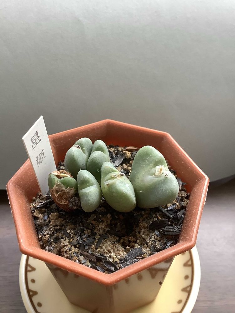 私が初めて育てるコノフィツムです。迎えた時に咲いていた花が終わってから何も変化がなく、地味な存在でした。今日、脱皮しているのを発見。花も咲くといいな。