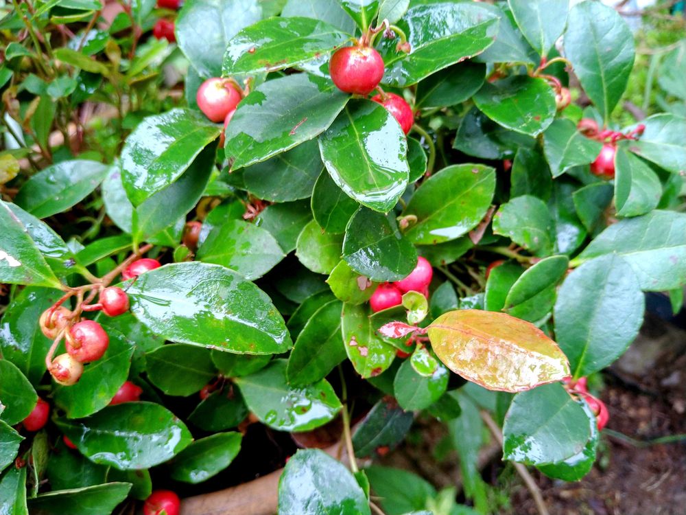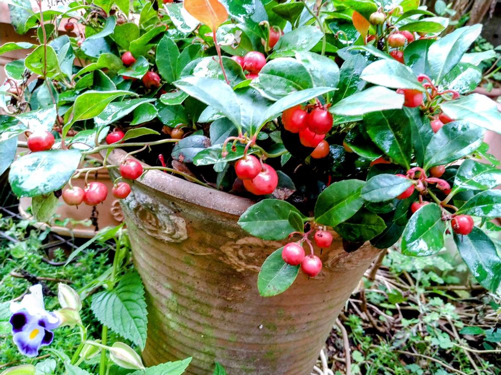以前お店で、こんな様な実がなってる鉢を見つけて、わぁ〜チェッカーベリーだ!とよく見たら、作り物の実でした💦