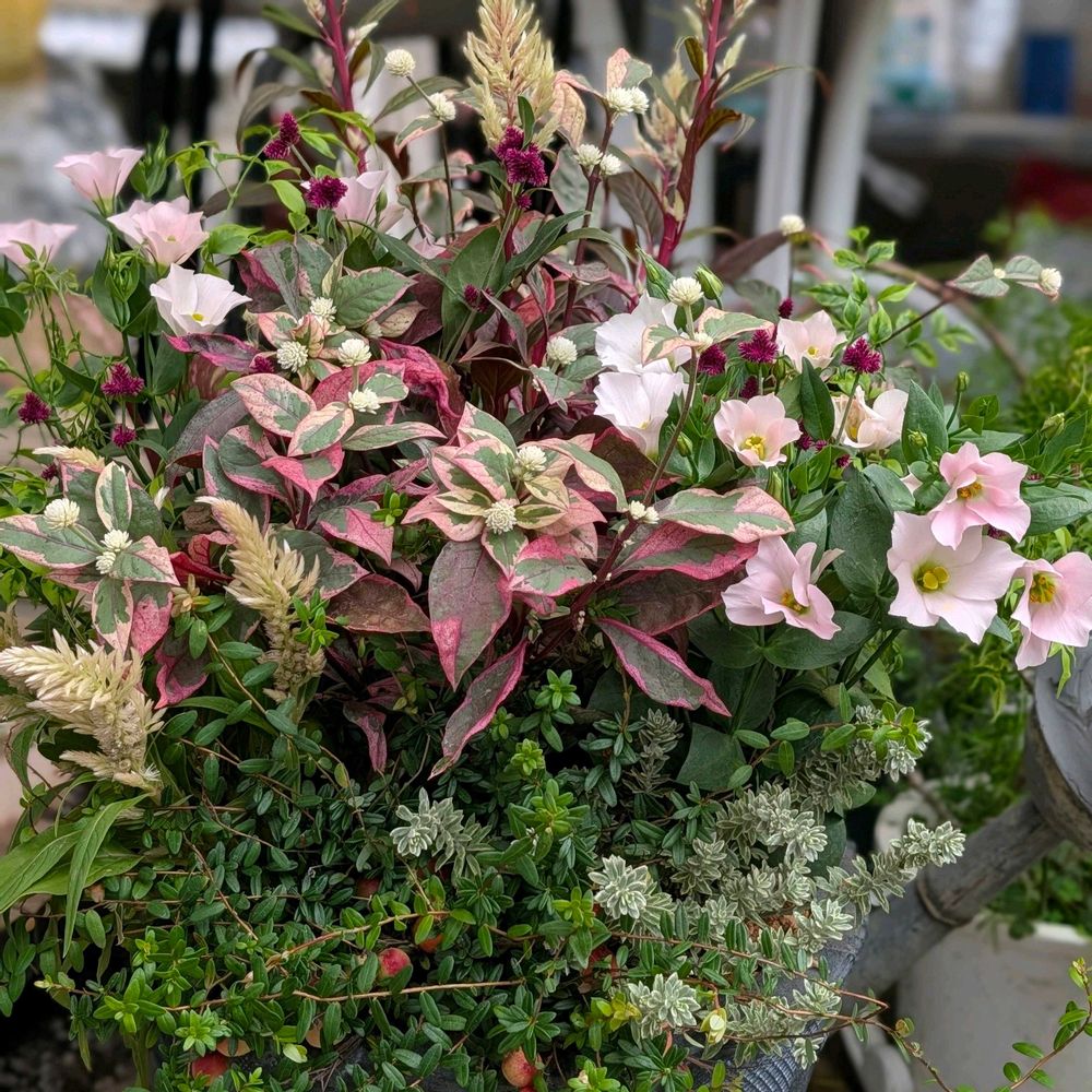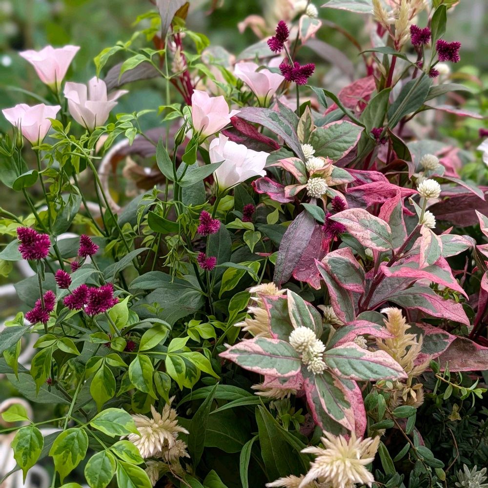 アルテルナンテラやクランベリーの赤が秋らしく、でもピンク色のシェリーが柔らかい雰囲気にしてくれます😉