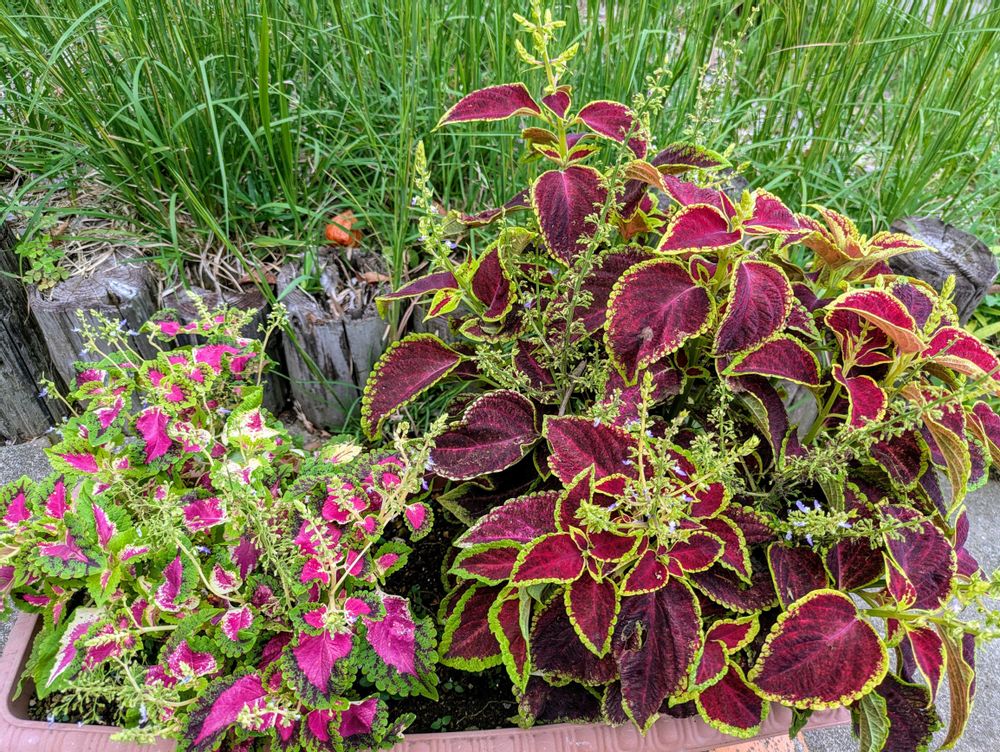 プランターで咲いていたコリウスに可愛い紫色の小花💜が咲いていました😍💕