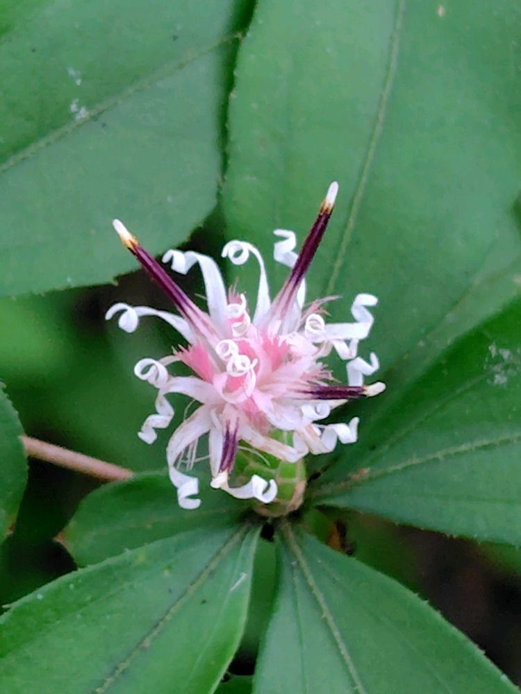 頭花は冠毛があり、筒状花が10数個集まっている。花冠の先が深く5裂しねじれている。