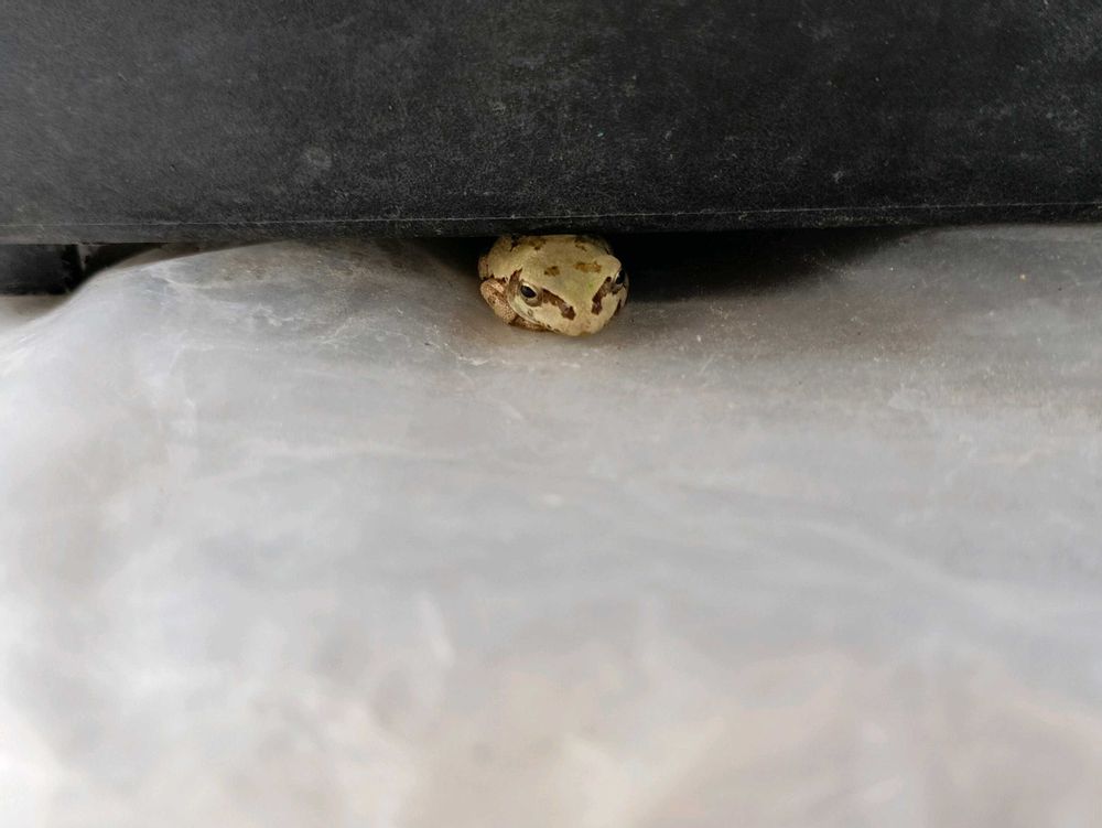 帰宅したら、鉢の下に挟まってた🐸💦かわいい♡