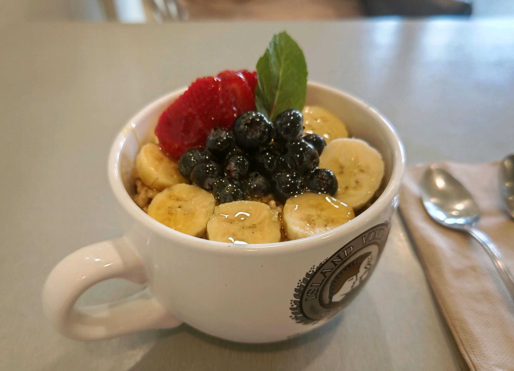 バナナとブルーベリーの下にはアサイーとコーンフレークが入っていたよ🍌