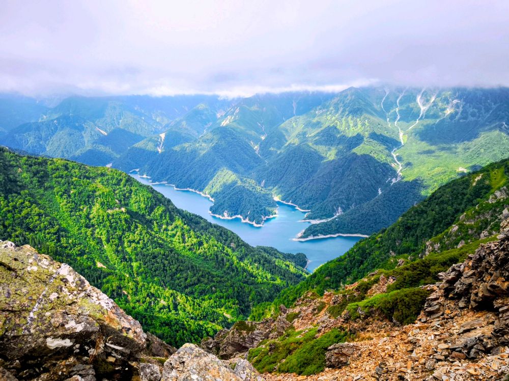 赤沢岳からしばらくは黒部湖(黒部ダム)を右手に眺めながら歩くことが出来ましたがスバリ岳が近づくほど厚い雲がかかり風も一段と強くなってきました🍃