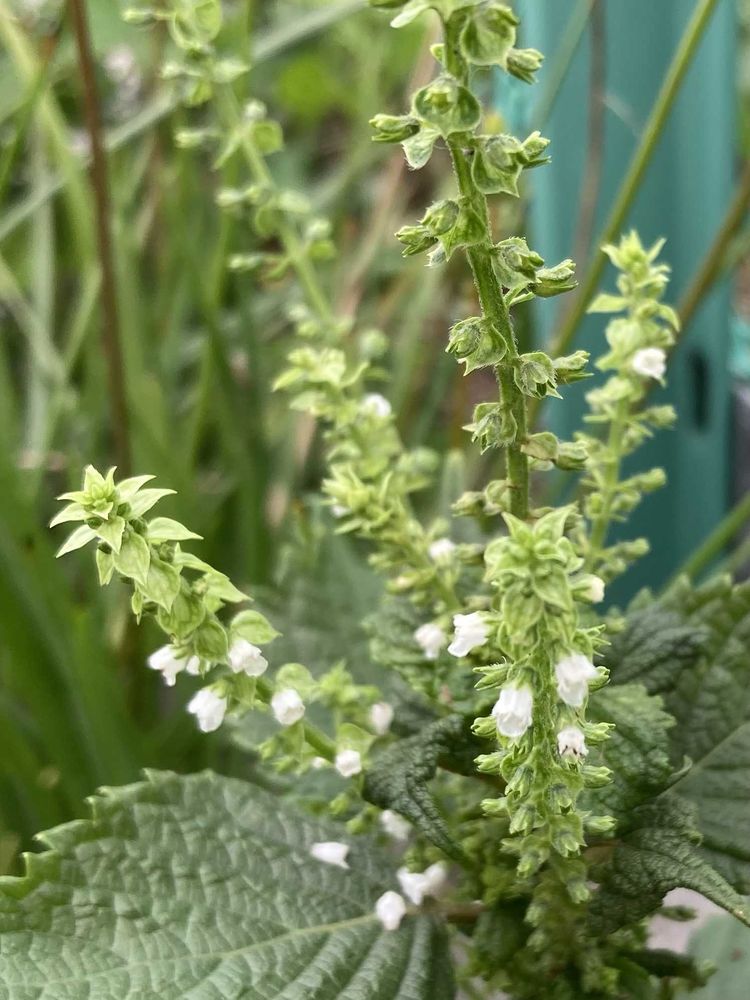 紫蘇の花穂🤍💚と、季節外れの紅輪タンポポさん😍💛🧡
