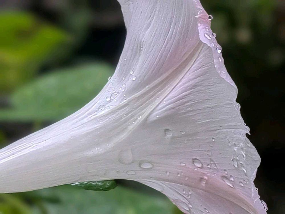 今朝咲いた朝顔は繊細な雨粒をつけて…