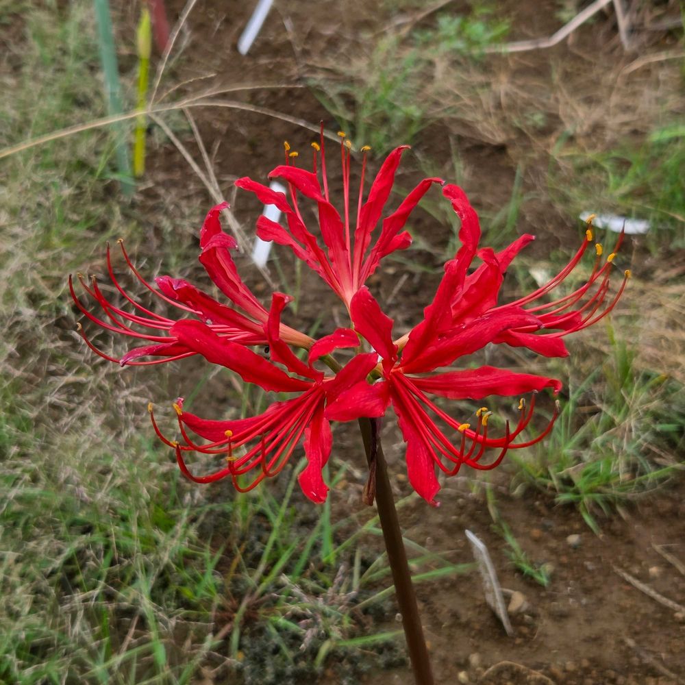こちらも初開花です!小森谷ナーセリーさん作出のリコリスです。ヒガンバナに色は似ていますが、花形に若干違いがあります!