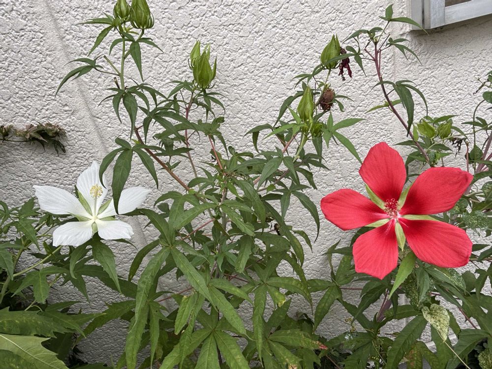 モミジアオイの紅白揃い咲き