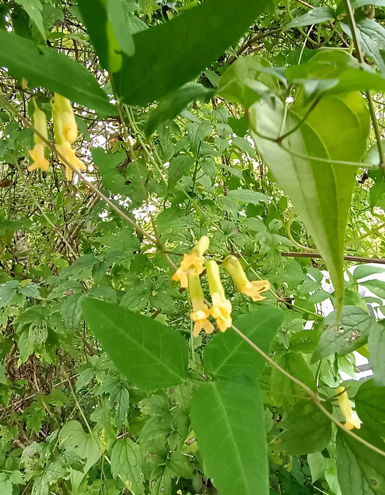 どちらもツル性、色んな場所に絡んで咲いてました。