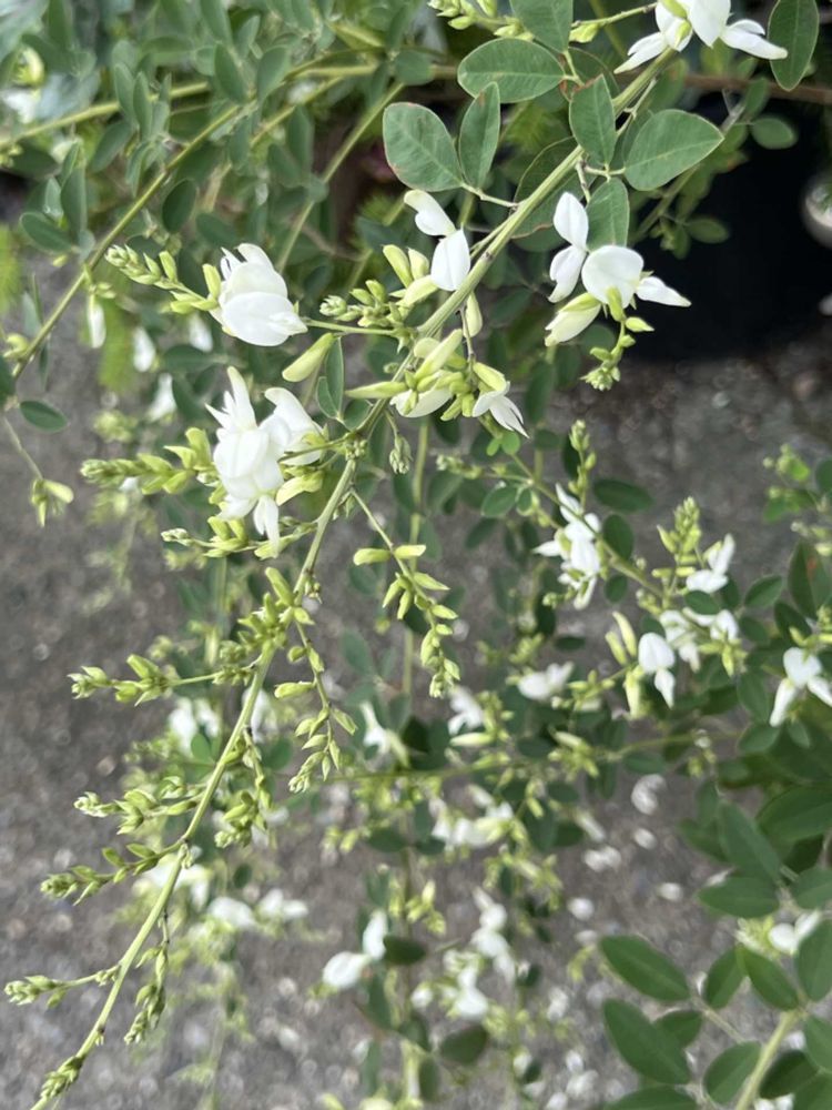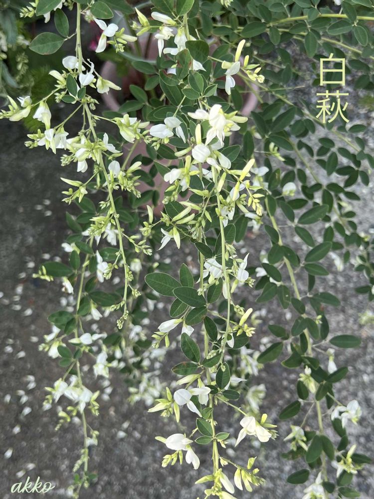 庭の大きな鉢植えで、白い萩が咲いてきました
