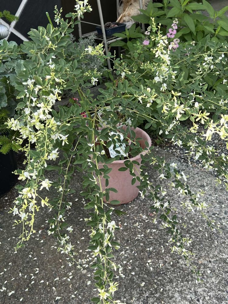 白い萩を大事ににしたくて,地植えよりも鉢植えにしました