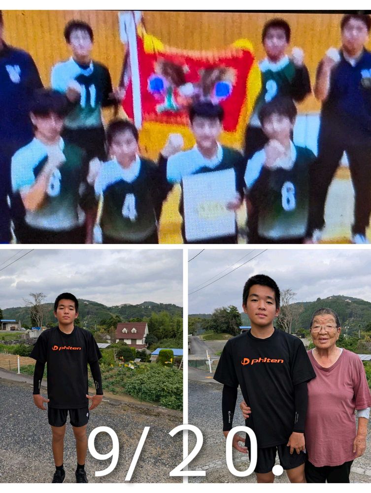 気温21度、涼しい朝色々コラージュしました🧚見てね🙋8番目の孫中3バレーボール特訓中〜練習帰りに来てくれた🏐