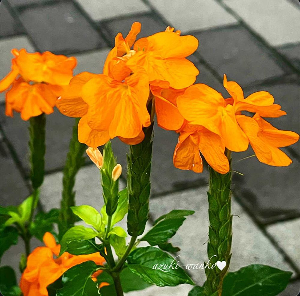 クロッサンドラ・スーパーキャンドル(学名: Crossandra infundibuliformis 英名:Crossandra Super candle)の花 🌸🌿🌺