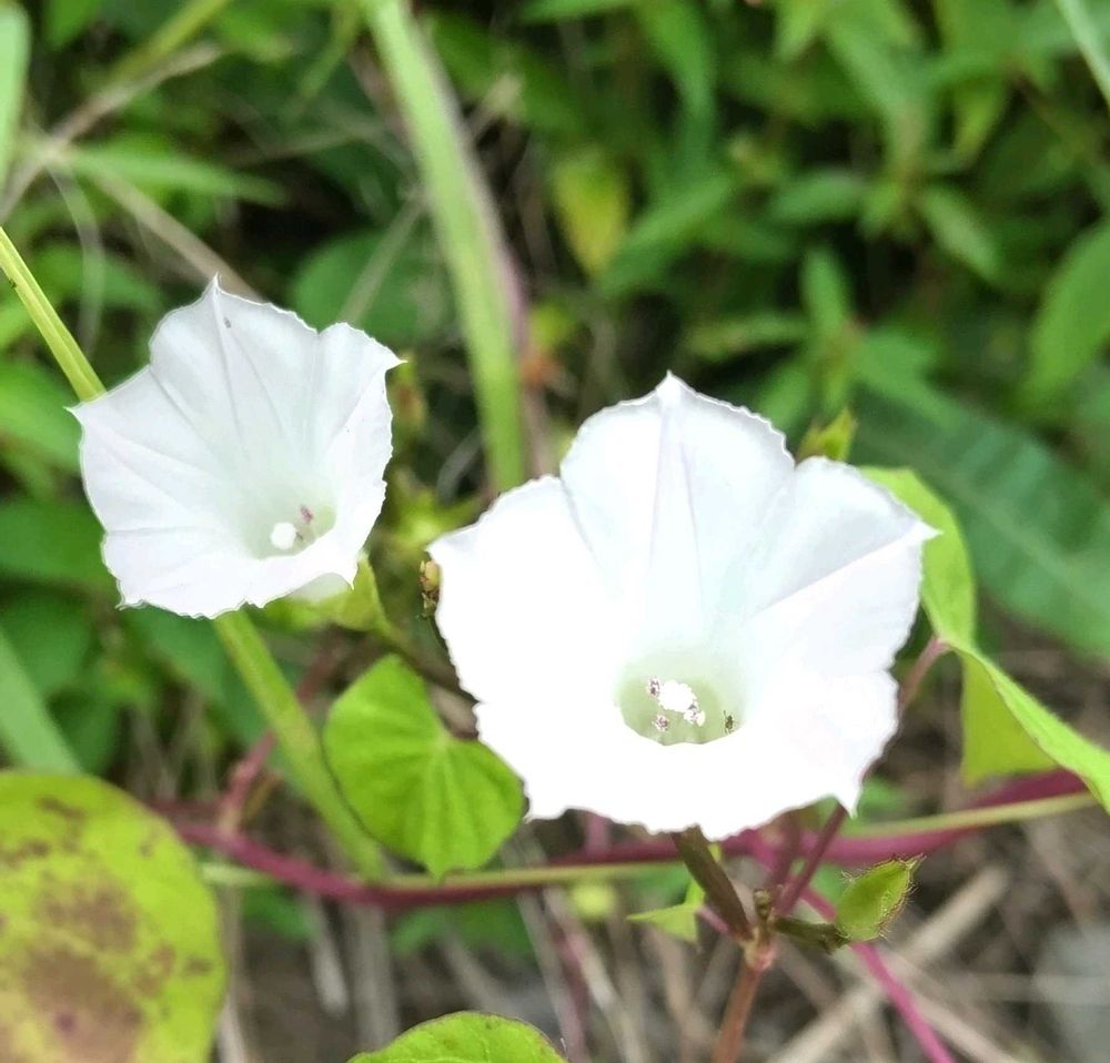 小さいのにアサガオの形をしたマメアサガオ。大きな野草達に紛れて可愛い花を咲かせています❣️