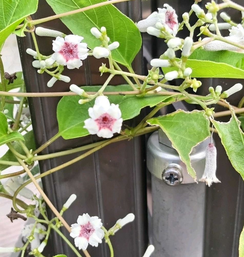 今年は見かけなかったヘクソカズラが、空き家のガレージに咲いていました。