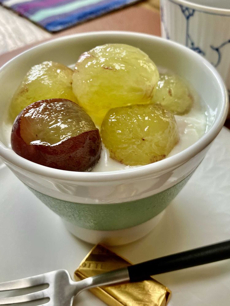 大きな🍇の皮を剥かずに、、、