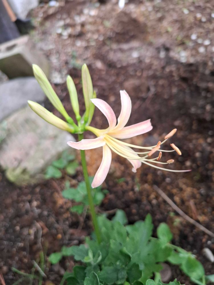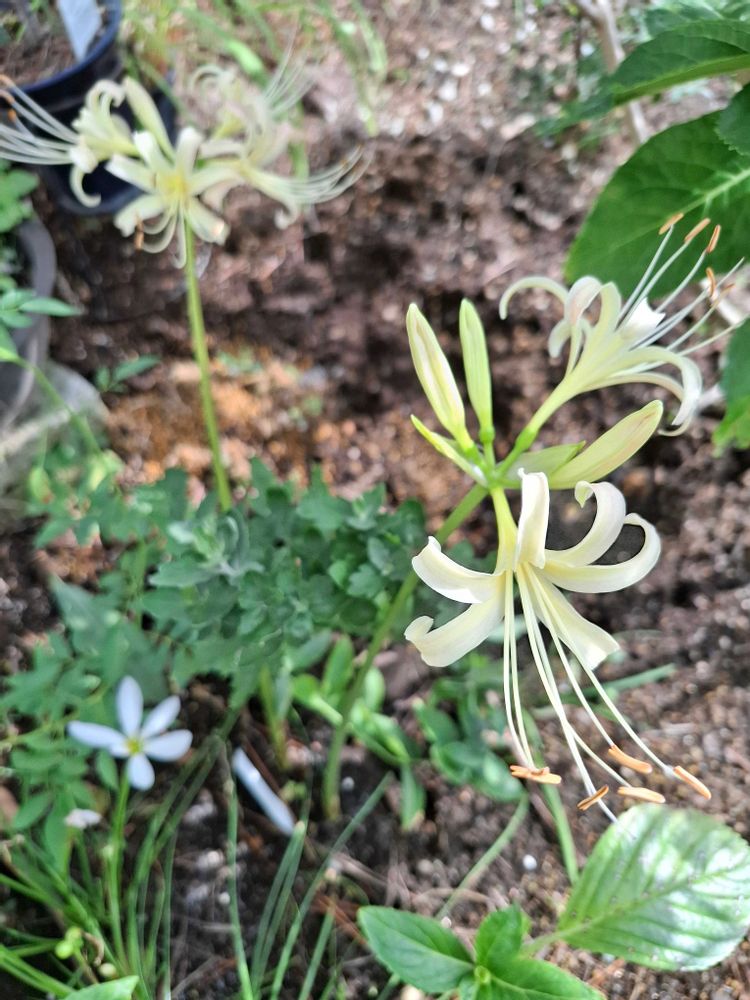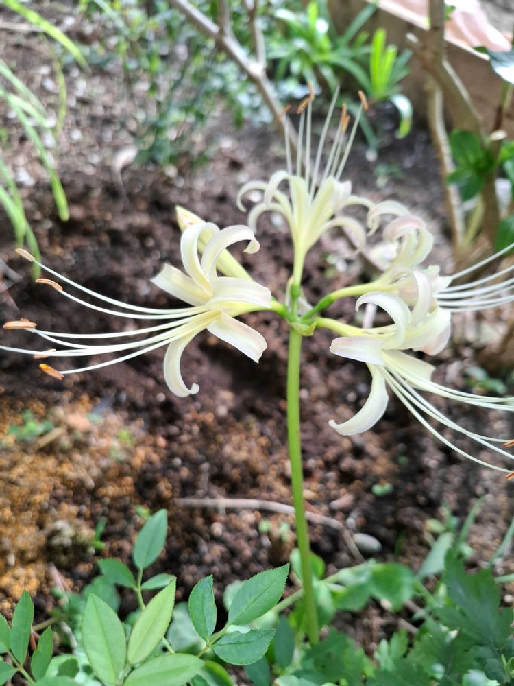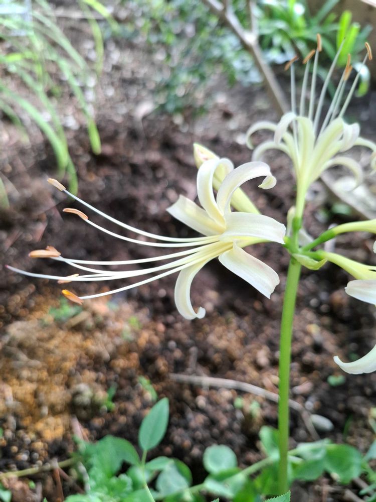 クリーム色の彼岸花、赤とは雰囲気が違って優しいイメージです〜