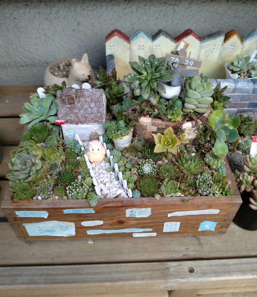 私は箱庭作った事ないからとっても素敵だなと思いました👍他の苗をプラスしていく楽しみもあるし〜寒くなるのが楽しみな箱庭ですね😄🎶