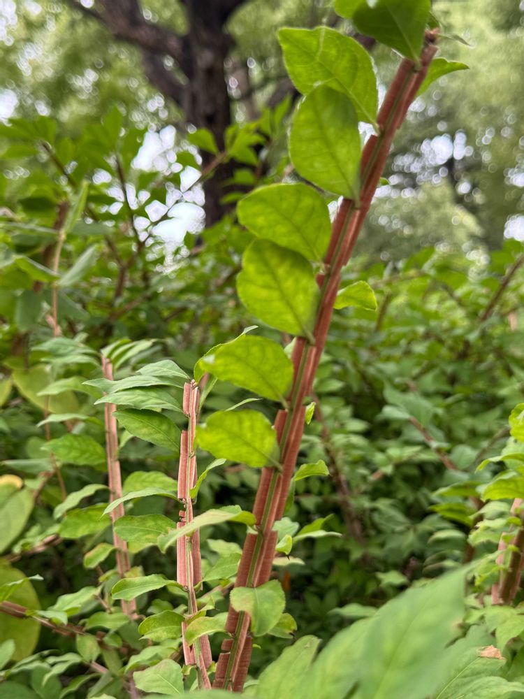 庭にもつるが伸びて