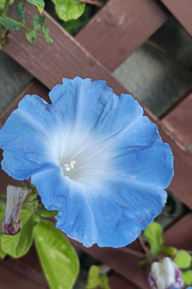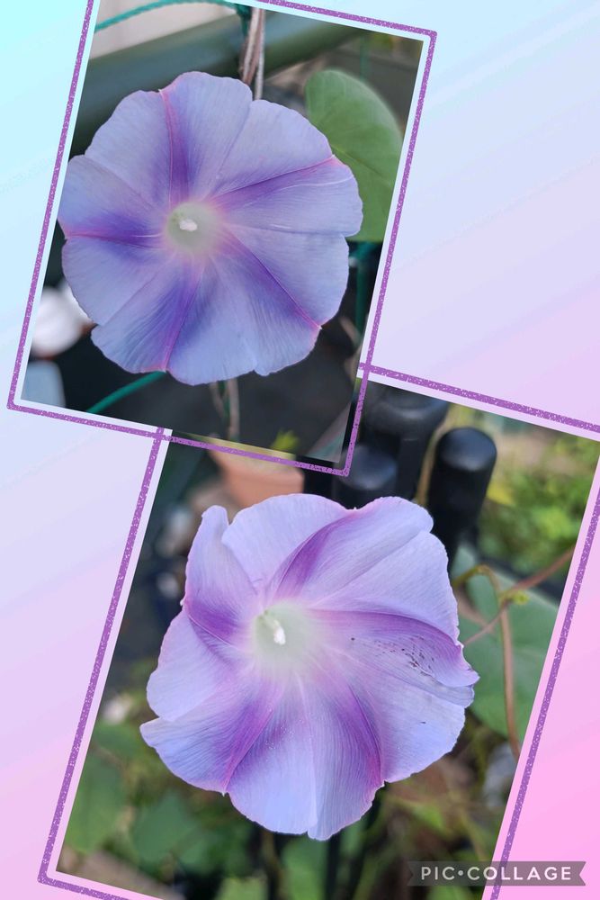 こぼれ種のアサガオ、今朝の方が色がハッキリ😉