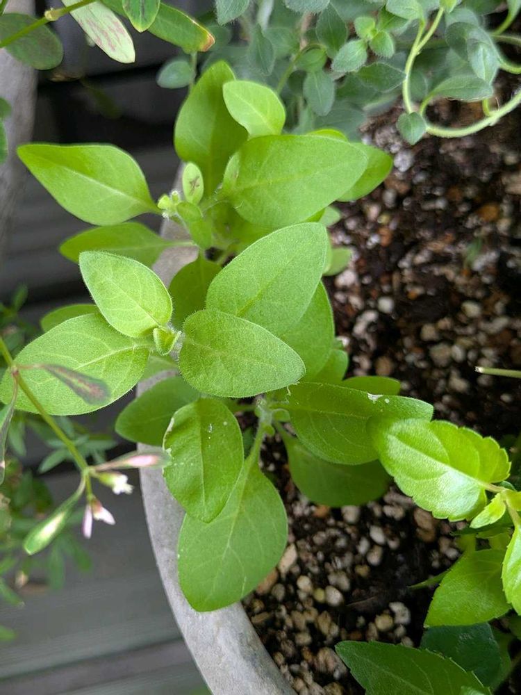 梅雨前までは順調に株も大きくなり沢山咲いていたのに、梅雨前に刈り込んだら、あっという間に枯れました。かろうじて保険で挿し木してあった1枝が生き残っています。今年は暑すぎて遮光したせいか、ペチュニア類、カリブラコア類がのきなみ夏の間、全然咲かずこんなことは初めて。