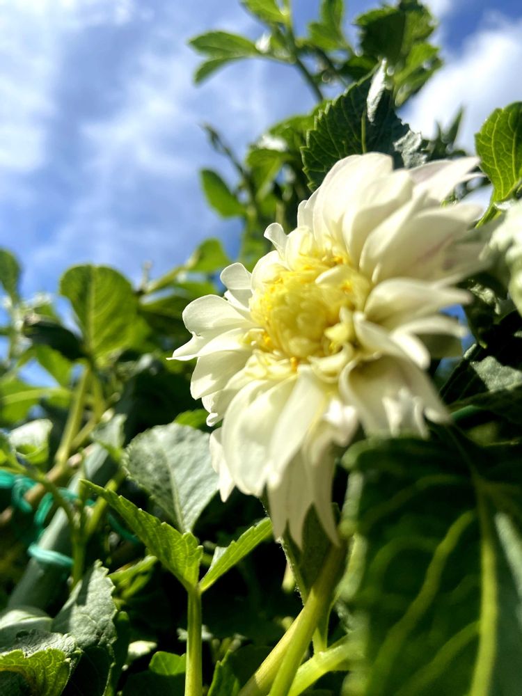 ホームセンターで安売りしてたポンポンダリアさんがやっと咲いてくれた🙌 球根を3本買ってて、1本しか芽が出なかった子やった。どんな色なんやろ?って楽しみにしてたら優しい色合いの子が頑張って咲いてくれてメッチャ嬉しいわ〜😃☺️
