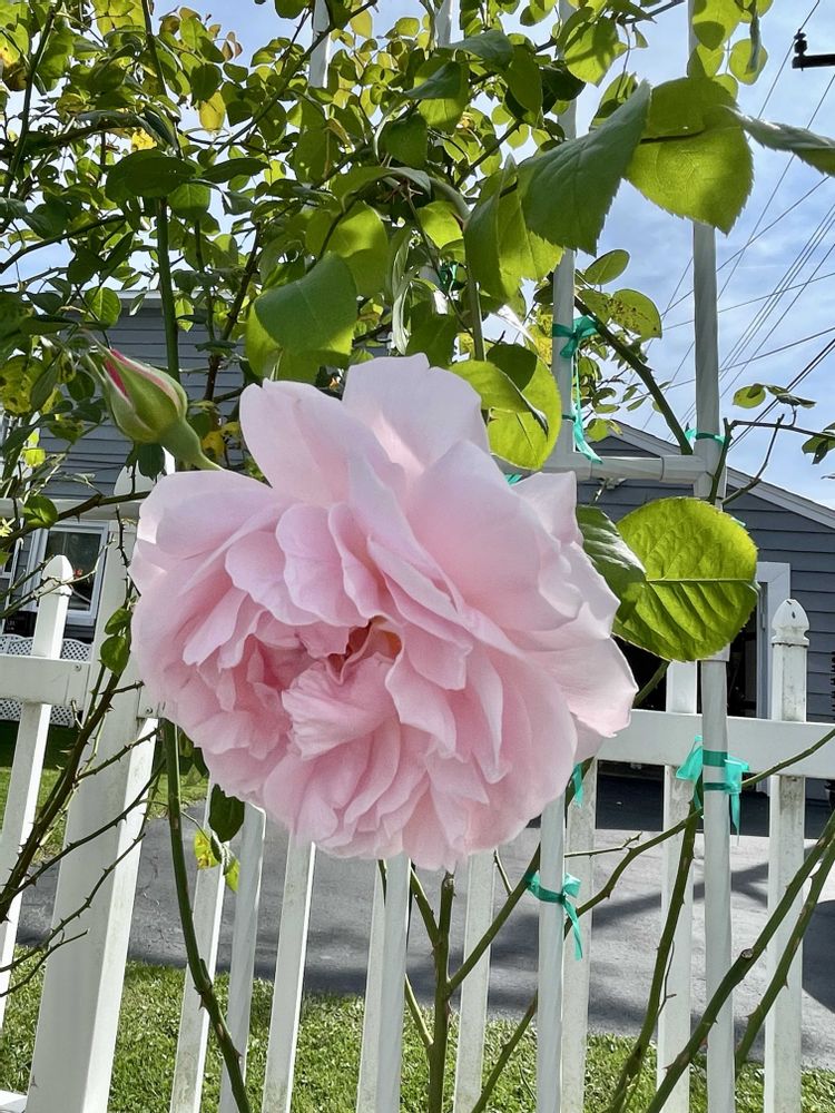トレリスとフェンスの間という、ややこしい場所で咲いていました