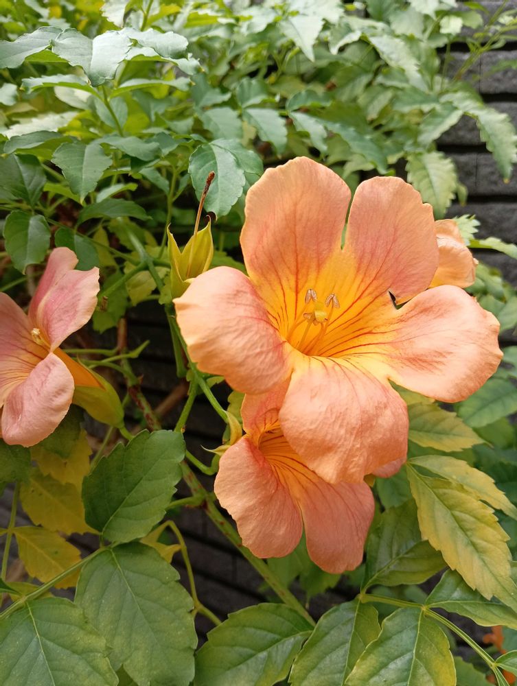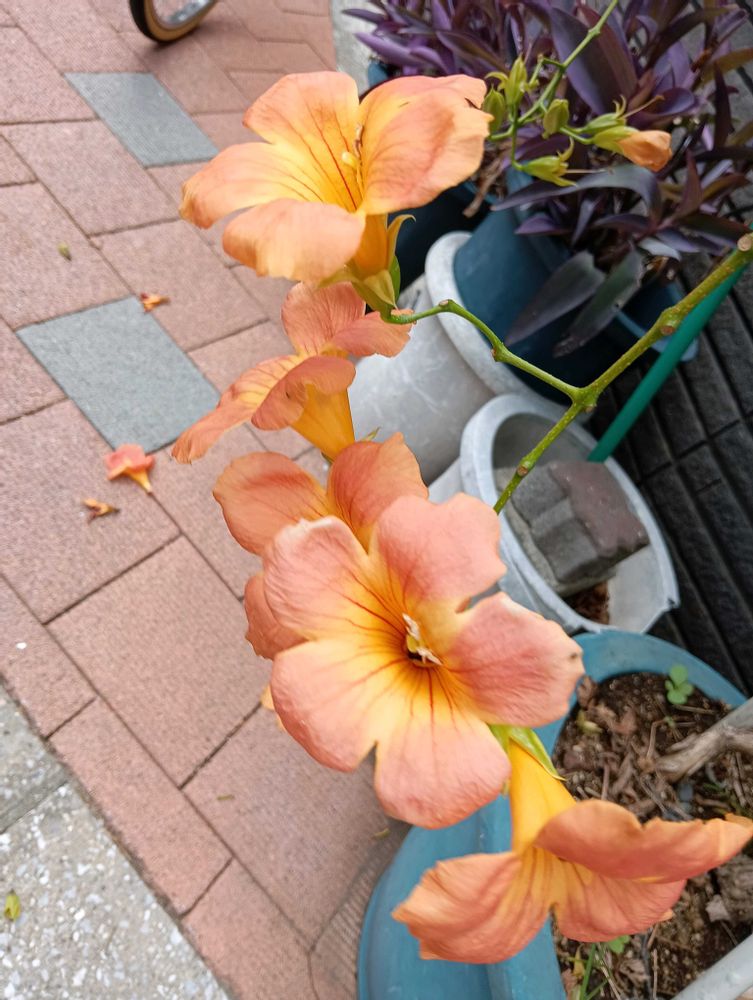 田端駅前にて、🧡🧡🧡のうぜんかずら🧡
