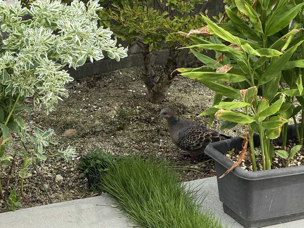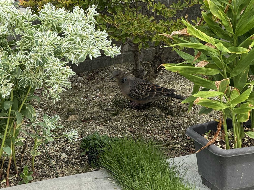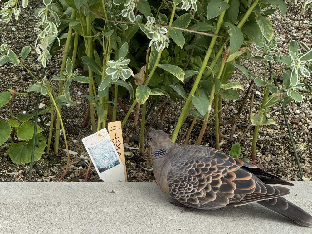 今日はお一人様ですが、母の初雪草の根元を突っつき、ランチタイムのようです。