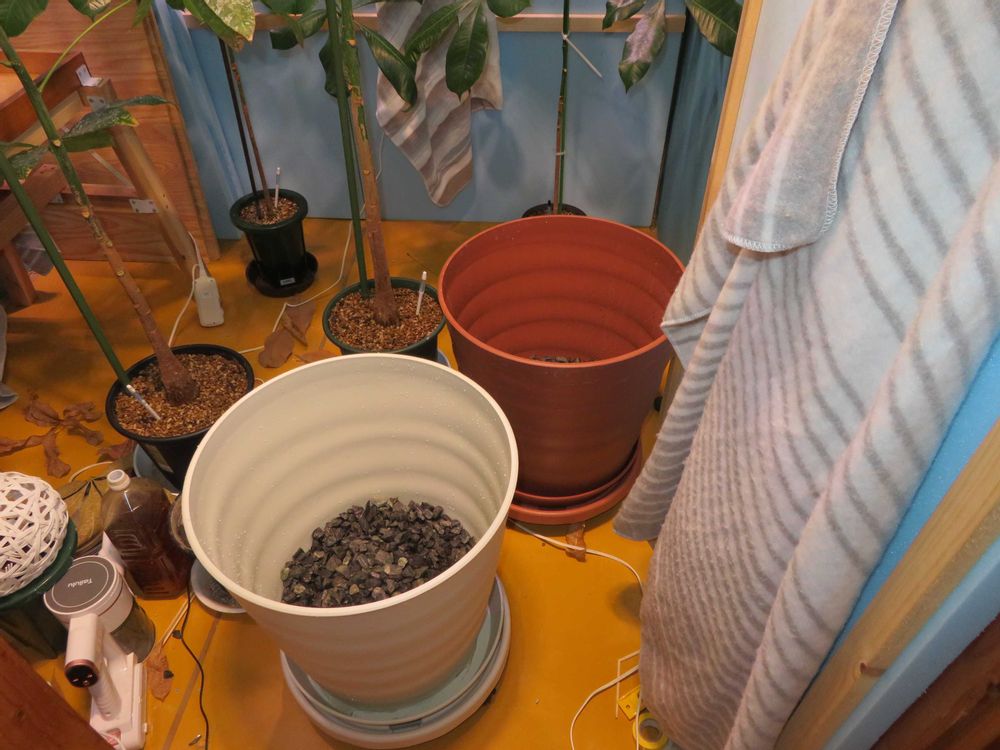 これからパキラの鉢を置いて、側面にスポンジレンガと
