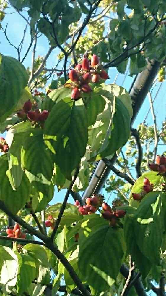 歩道を歩きながら、ふと見上げると、ハナミズキが赤く色づいていました😊