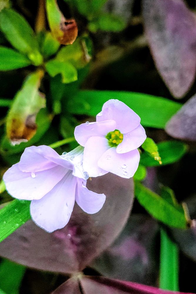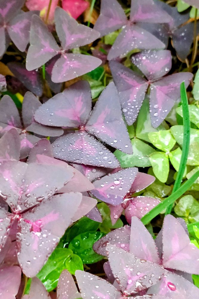 4枚目、酷暑で葉を閉じていたオキザリスも葉を開いて雨に濡れていました😍