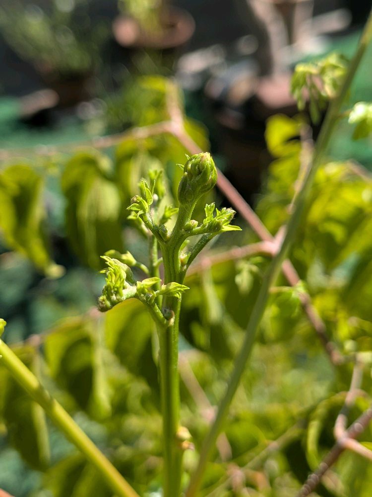 4年前に沖縄から枝を頼み挿し木したタイワモクゲンジに花芽が2カ所出来て花穂が伸び始めています。去年は蕾があがって来ましたが落下してしまったので、今年こそは咲いてくれると思います。そして黄色い花が咲き桃色の実がなり紅葉のようでとてもキレイなのですが、沖縄では成長が早く繁殖力が凄いので規制植物になっているそうです。こちらでは同じムクロジ科の仲間のモクゲンジ、オオモクゲンジが植栽されておりタイワンモクゲンジは耐寒性があるので一部の場所に何故かあります。知っている限りではディズニーシー、藤沢の長久保公園、大阪などにありましたが成長が早く高木になるので管理が大変だと思います!