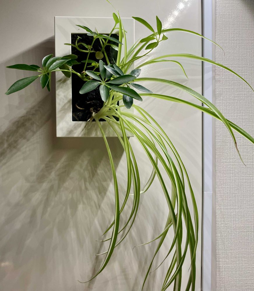 無印良品で購入した壁掛け植物を植え替えて2年目。壁面に緑を飾れるのはとても嬉しい。