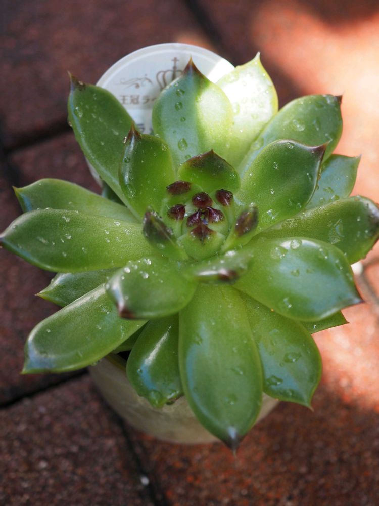 水やり後、多肉棚の奥でツヤツヤに輝いているのを発見✨️