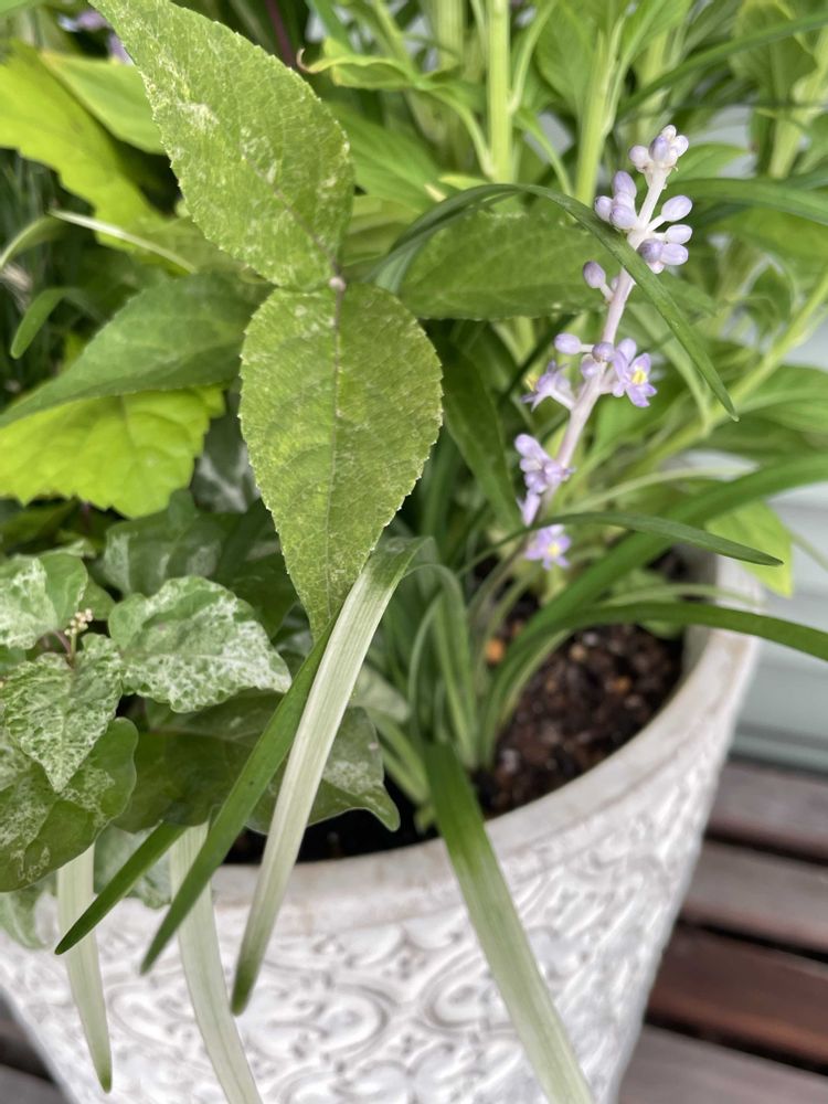 グリーンの濃淡に紫…素敵な寄せ植えですね♡好きな色です🥰