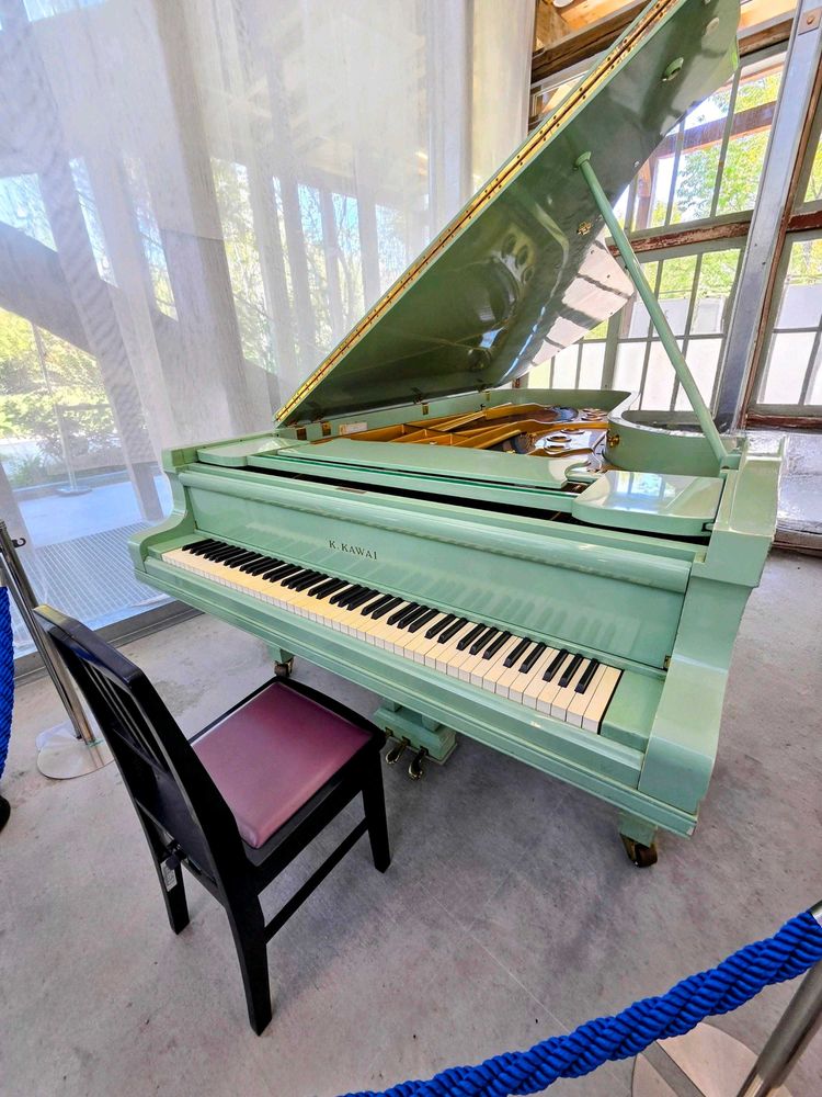 ミントカラーのグランドピアノの横で、河瀬さんによる奈良の紹介トークショーがありました✨🎹