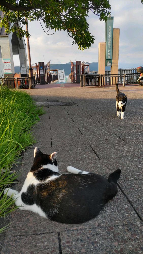 ②〜④桜島のニャン、海釣り公園で獲物をおねだりしてるからか太っちょ(笑)