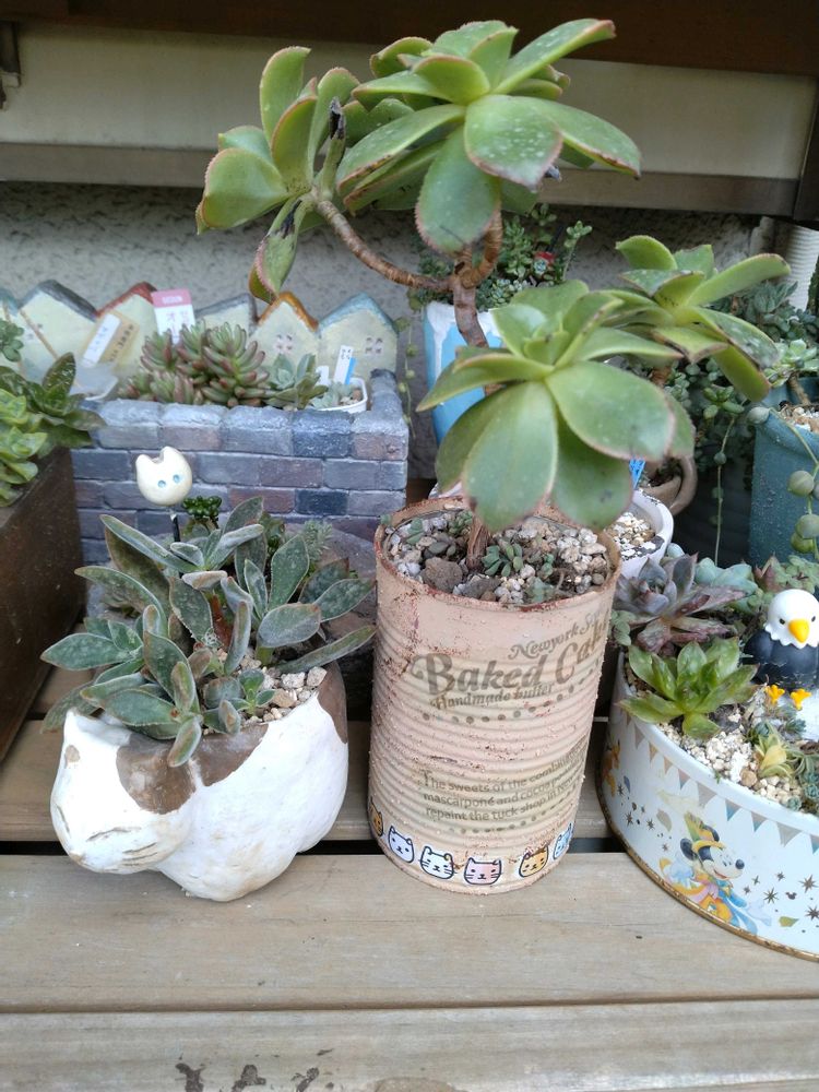 お目覚めしたのかよくわからないけど 猫リメ缶に植え替えた夕映え🍀
