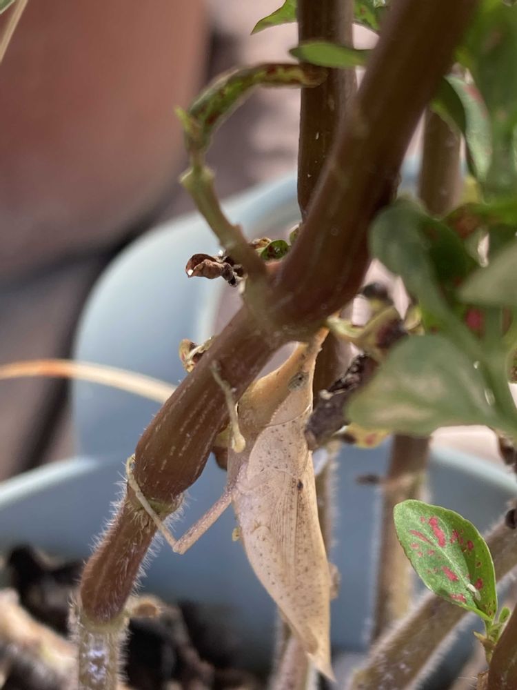 それにつけても、見事な擬態。ウッカリ枯枝と一緒に切っちゃう所でした💦🦗