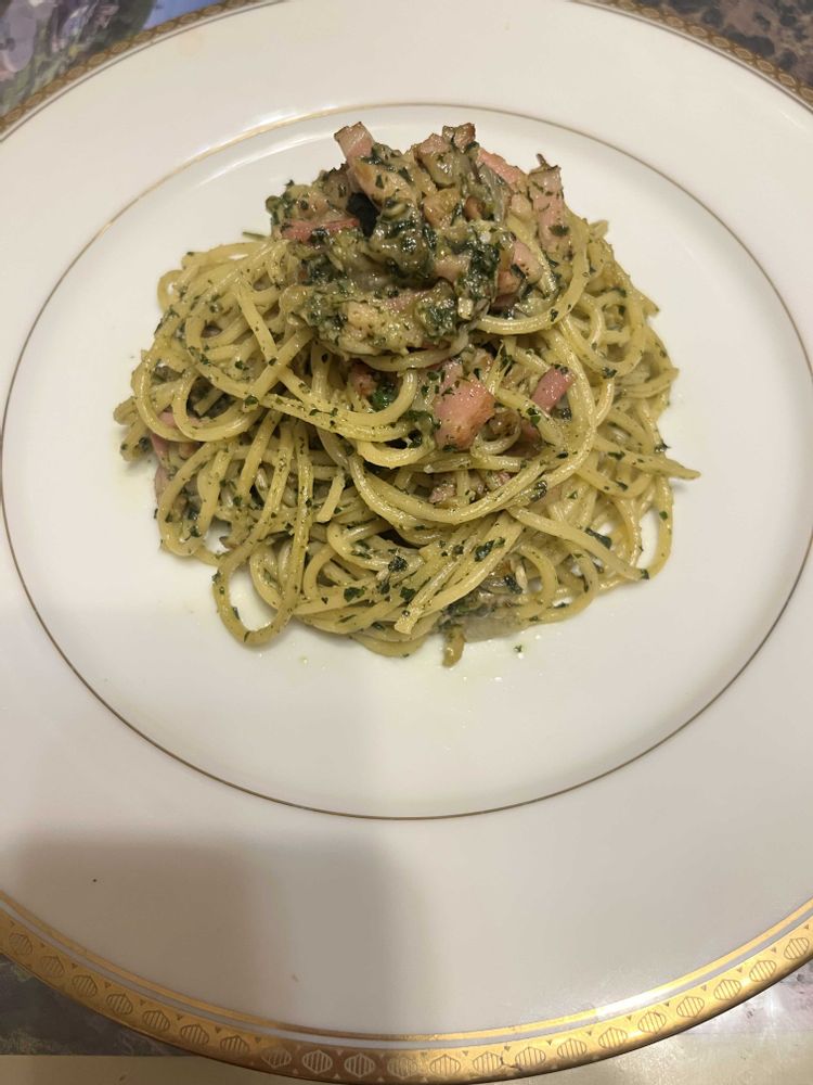 昨晩はG.Sの『ポンポンの』さん投稿(2025.9.21)のレシピ「ベーコン🥓と紫蘇入りジェノベーゼ風パスタ」を自宅で摘んだ紫蘇が少なかった為